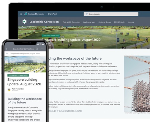 Build cohesion and inform your employees throughout your intranet. Drive organizational efficiency by sharing common resources and applications on home sites and portals. Tell your story with beautiful communication sites. And stay in the know with personalized, targeted news on the web and the SharePoint mobile apps.